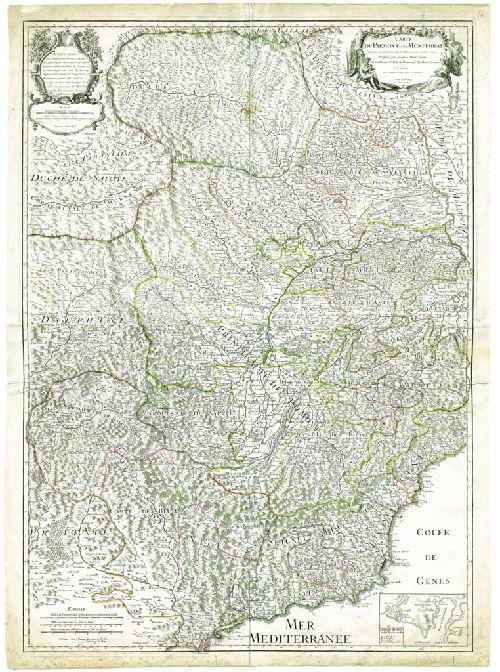 Carte du Piemont et du Monferrat Dressée sur plusieurs Cartes Manuscrites ou Imprimées Rectifiées par quelques Observations par Guillaume Del Isle de l'Academie Royale des Sciences. A Paris chez l'Auteur sur le Quai de l'Horloge avec Privilege Avril 1707